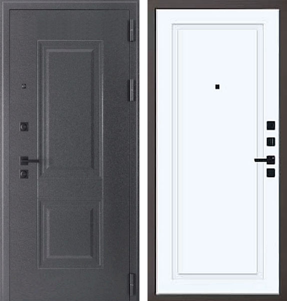 Отделка двери Берлин штамп 3 QIT 5 снаружи - металл, штамп 2, цвет AkzoNobel Металлик графит, отделка внутри - фрезерованная панель, цвет Велюр белый.
