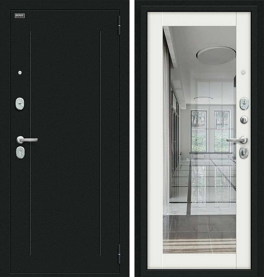 Флэш Kale Букле черное / Off-white - качественная входная дверь серии Bravo R производства компании "Bravo". Дверь имеет стабильно точные геометрические показатели, которые обеспечиваются благодаря роботизации и высокой степени автоматизации производства.