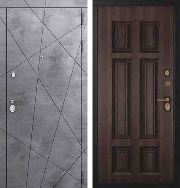 Отделка двери Президент Квадро снаружи - МДФ-панель, Бетон темный, отделка внутри - фрезерованная панель, винорит, цвет Венге.