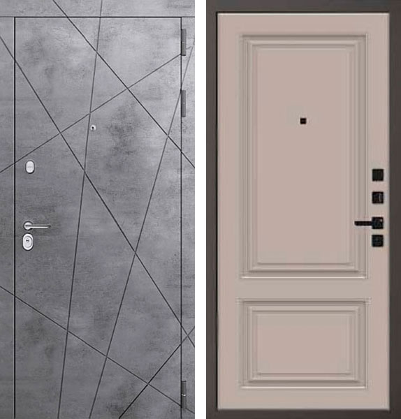 Отделка двери Президент QBS 1 снаружи - МДФ-панель, Бетон темный, отделка внутри - фрезерованная панель, цвет Велюр темный.