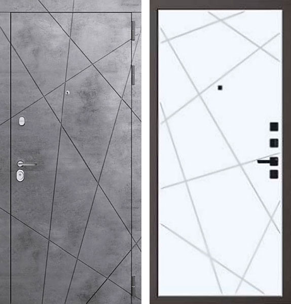 Отделка двери Президент QML 1 снаружи - МДФ-панель, Бетон темный, отделка внутри - панель, цвет Велюр белый.