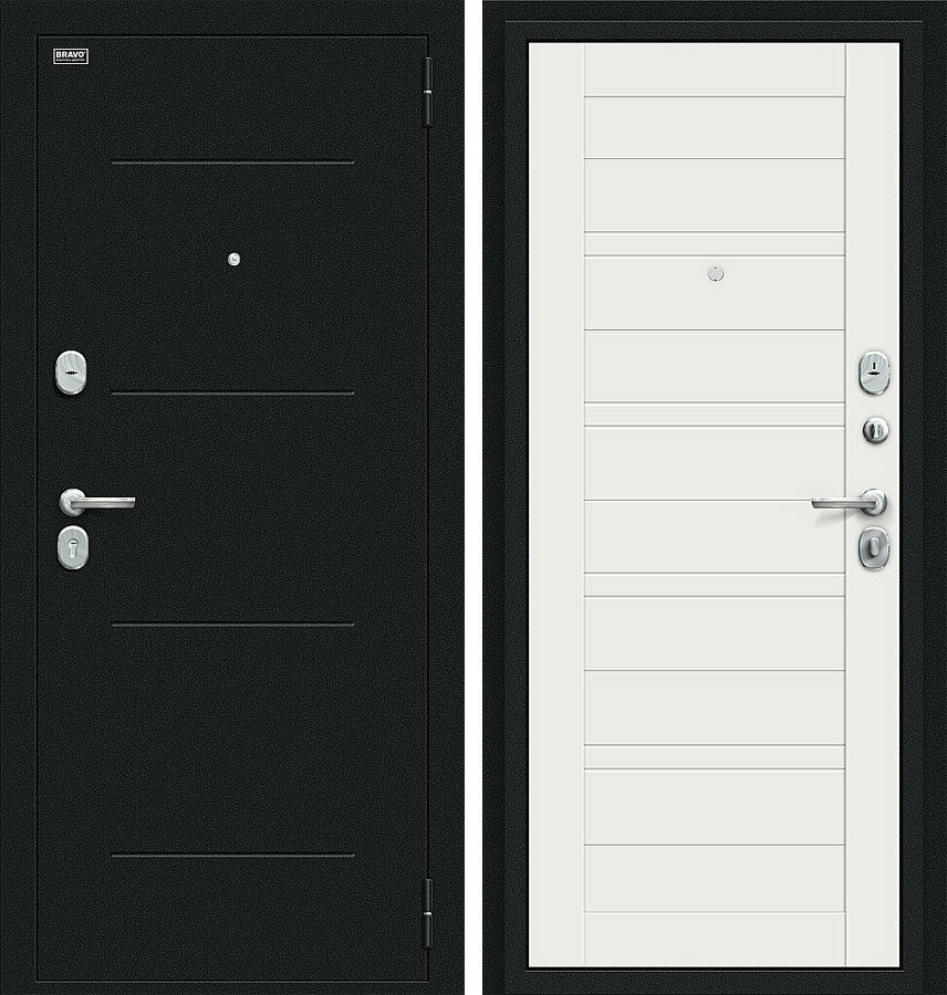 Сити Kale Букле черное / Off-white - качественная входная дверь серии Bravo R производства компании "Bravo". Дверь имеет стабильно точные геометрические показатели, которые обеспечиваются благодаря роботизации и высокой степени автоматизации производства.