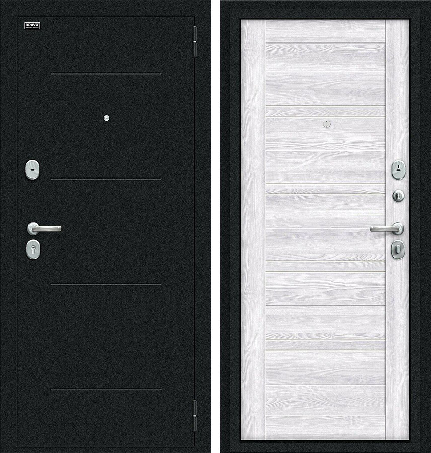 Сити Kale Букле черное / Riviera Ice - качественная входная дверь серии Bravo R производства компании "Bravo". Дверь имеет стабильно точные геометрические показатели, которые обеспечиваются благодаря роботизации и высокой степени автоматизации производства.