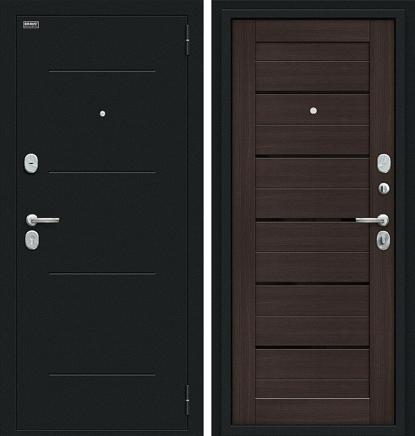 Техно Kale Букле черное / Wenge Veralinga - качественная входная дверь серии Bravo R производства компании "Bravo". Дверь имеет стабильно точные геометрические показатели, которые обеспечиваются благодаря роботизации и высокой степени автоматизации производства.
